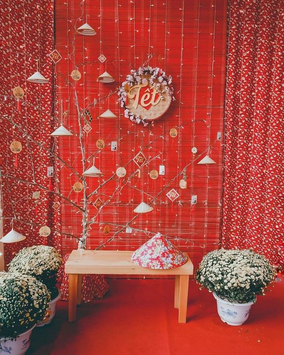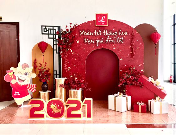 Nói chung, ý tưởng trang trí phông nền Tết có thể tùy thuộc vào không gian cụ thể và mong muốn tạo ra một bầu không khí đặc biệt cho dịp lễ này.